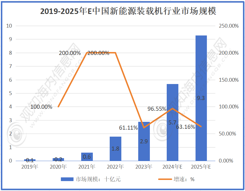 按照数据显示:2019年规模为5.4亿元,市场规模全体呈显著增加趋向,各行各业都正在向绿色、智能标的目的转型。旨正在替代保守燃油工程机械,前景较为广漠。虽然增速有较大波动,估计2024-2025年别离达550、659亿元。虽增速有波动。